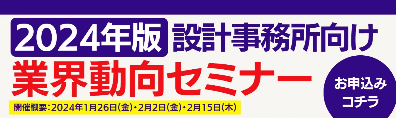 さらに詳しい情報は、1月26日、2月5日、2月15日に開催を予定している「設計事務所向け 業界動向セミナー」にて紹介しております。